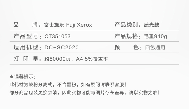 富士施乐SC2022CPSDA粉盒墨粉富士胶片SC2022硒鼓感光鼓 2022硒鼓CT351053四色通用 自营