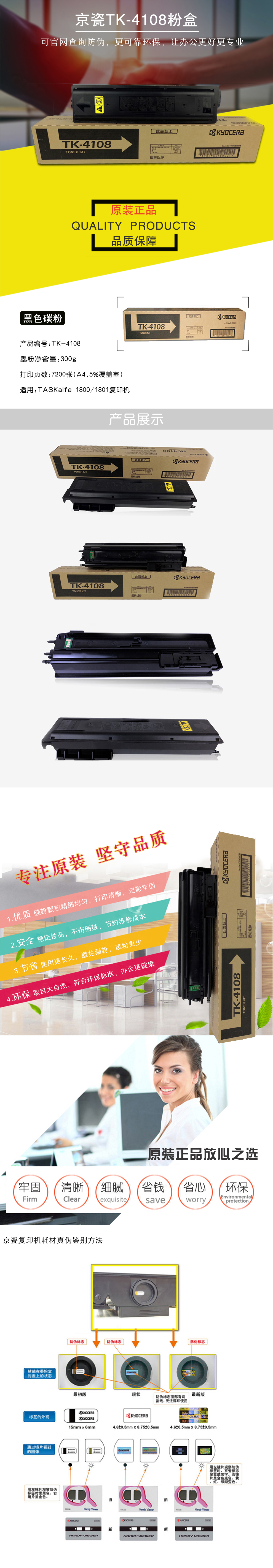 京瓷原装京瓷TK-4108粉盒TASKalfa1800 1801碳粉墨粉京瓷4108粉盒硒鼓 京瓷TK-4108粉盒 7000页 自营
