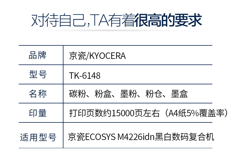 原装京瓷TK-6148墨粉组件京瓷m4226idn复印机硒鼓打印机碳粉 粉盒 京瓷TK-6148粉盒 约15000页 自营