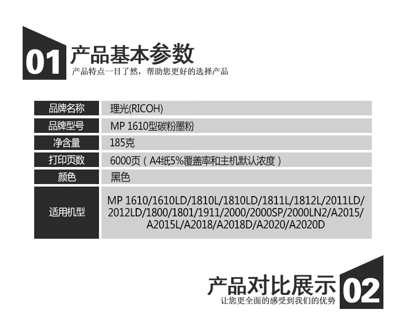 理光(Ricoh) MP 1610原装黑色墨粉盒 碳粉适用1810L/1811L/1911原装粉盒 自营