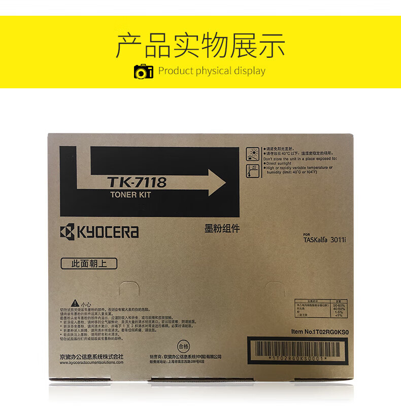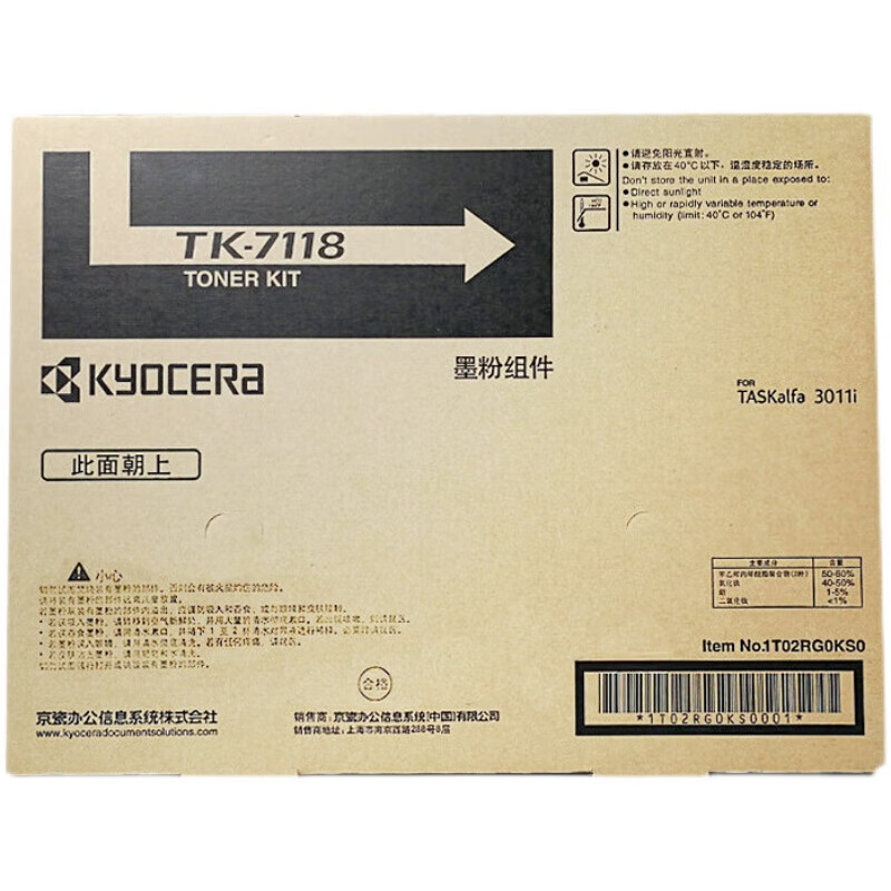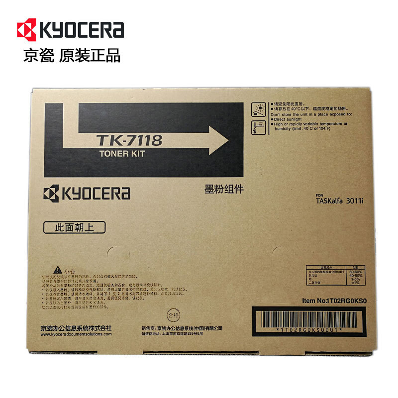 京瓷原装京瓷TK-7118粉盒墨粉碳粉3011i墨粉复印机黑色碳粉约24000页 自营